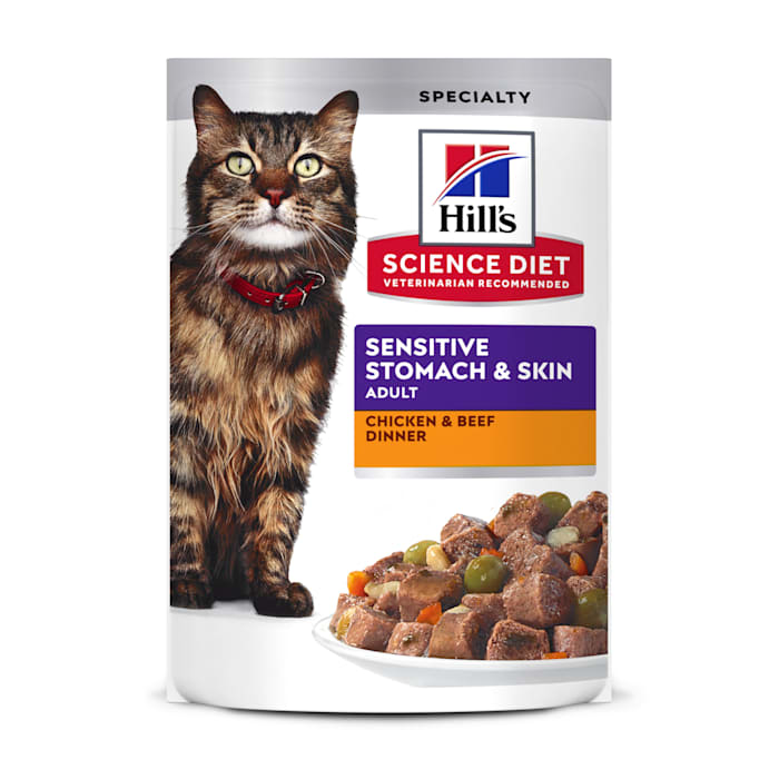 Hill's Science Diet Adult Sensitive Stomach & Sensitive Skin Chicken & Beef Cat Food, 2.8 oz., Pack of 24