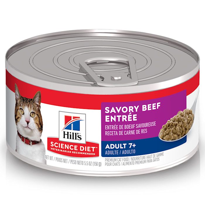 Hill's Science Diet Adult 7+ Savory Beef Entree Canned Wet Cat Food, 5.5 oz., Case of 24