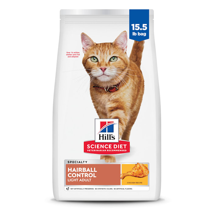 Hill's Science Diet Adult Hairball Control Light Chicken Recipe Dry Cat Food, 15.5 lbs.