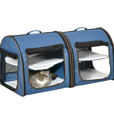 39" Portable Soft Pet Carrier, Travel Carrier With Consolidating, Two Compartments, Soft Cushions & Storage Vase Shielding, Bin
