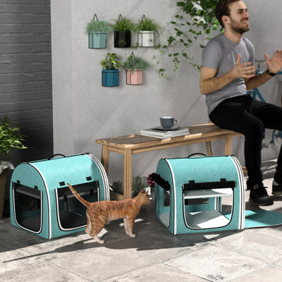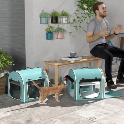 39" Portable Pet Carrier In Blue, Cloth, Detachable Feature Soft Cat Carrier, Blue. Cloth & Net Construction. Breathable And . Soft Cushions Included.