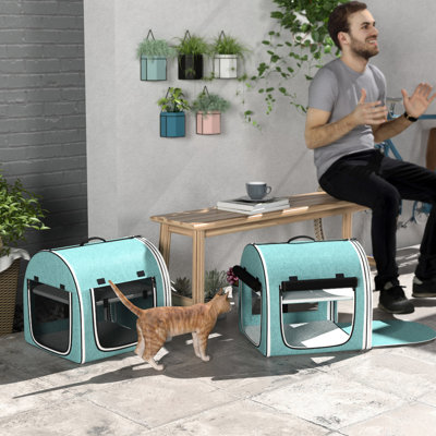 39" Portable Pet Carrier In Blue, Cloth, Detachable Feature Soft Cat Carrier, Blue. Cloth & Net Construction. Breathable And . Soft Cushions Included.