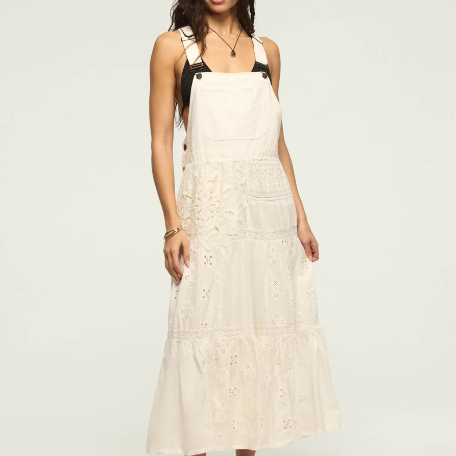 Lucky Brand Cutwork Overall Maxi Dress - Women's Clothing Dresses Maxi Dress in Tofu
