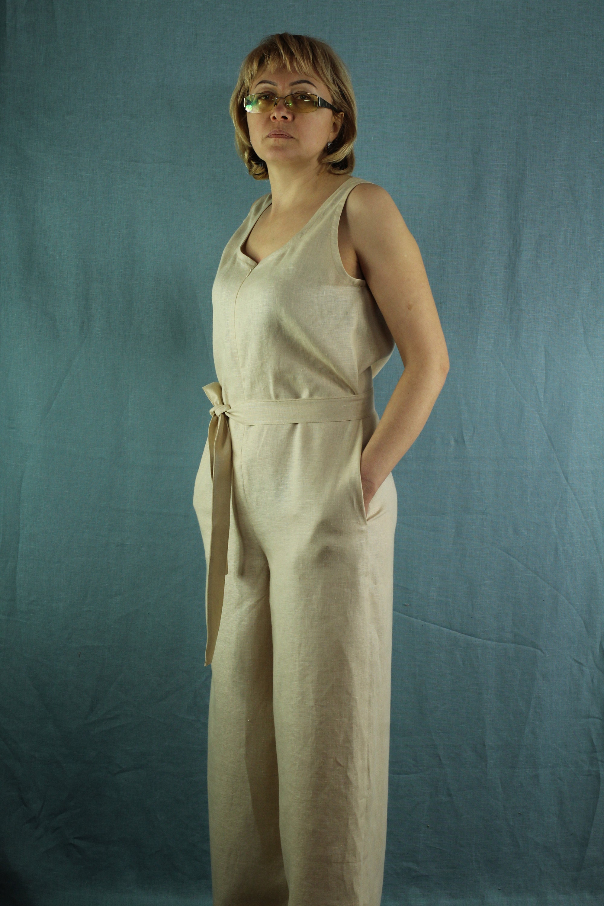 Women Linen Jumpsuit/ Casual Jumpsuits/ Wide Legged Pants/ Jumpsuit For Women/ Summer Jumpsuit