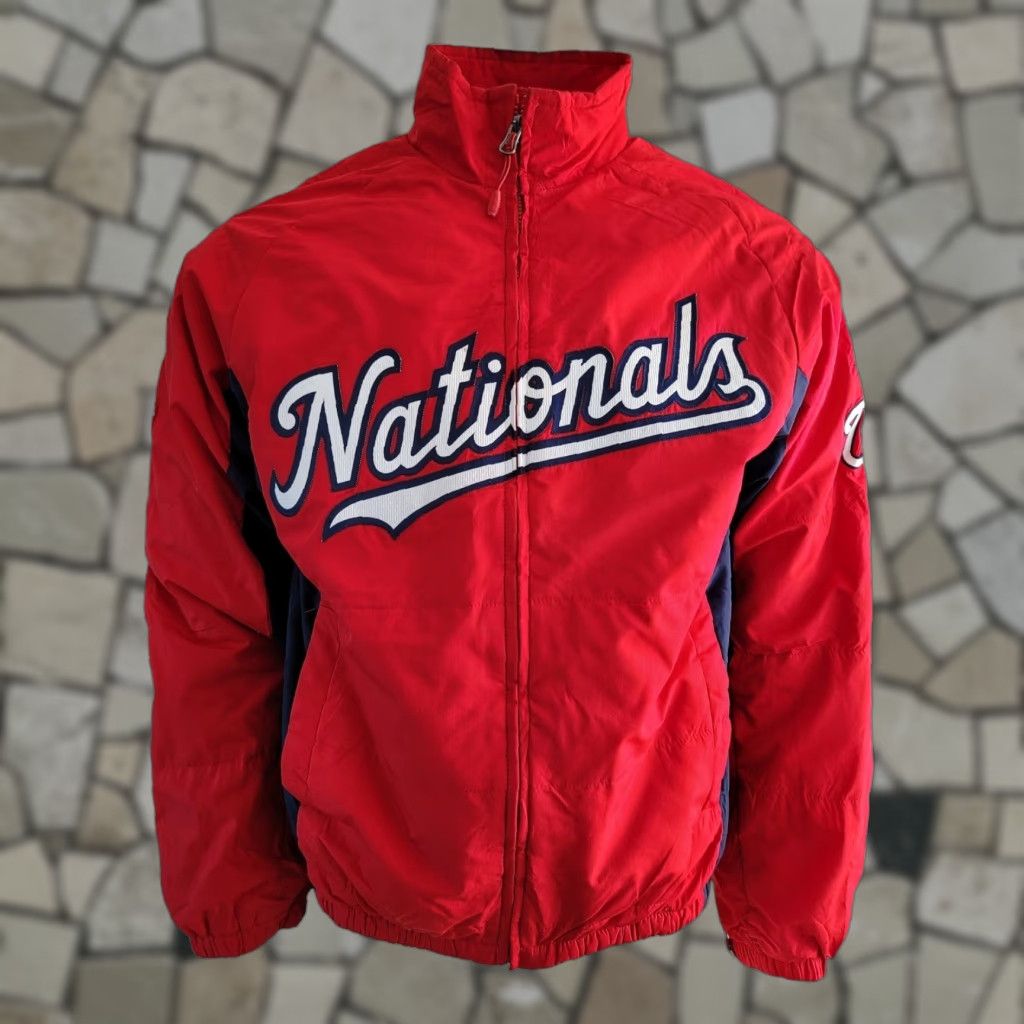 Washington Nationals Majestic Mlb Zip-Up Logo Jacket S Men Red Lined Fleece Bomber Jacket, Men's