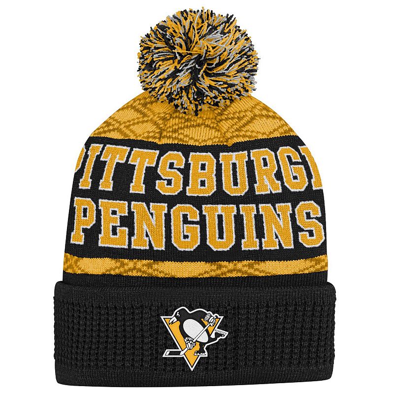 Youth Pittsburgh Penguins Gold Puck Cuffed Knit Hat with Pom