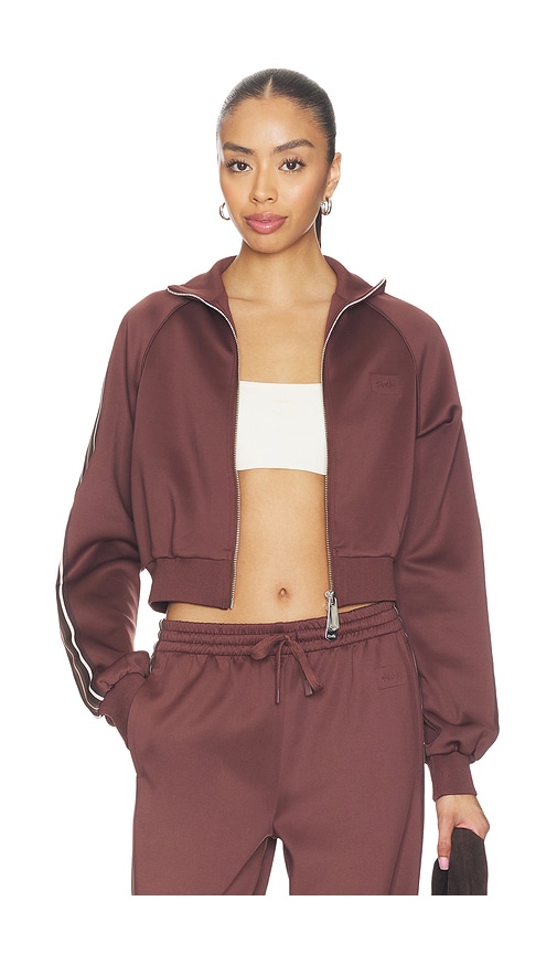 Ksubi Cropped Zip Track Jacket in Chocolate. - size L (also in XS, S, M)