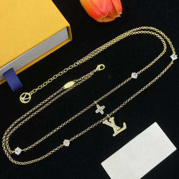 Pendant Necklaces designer necklace pendant necklaces womens layered sweater chain 18k goldplated pendant necklace featuring a timeless diamond flower design AA