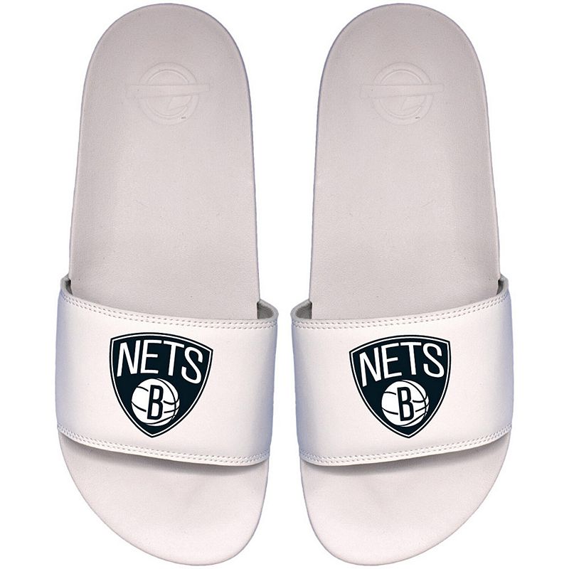 Men s ISlide White Brooklyn Nets Primary Motto Slide Sandals