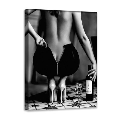 Woman With Wine Glass Poster Alcohol Wall Art Bar Cart Print Fashion Photography Nude Woman Art For Living Room Bar Bedroom,24 X 36Inch