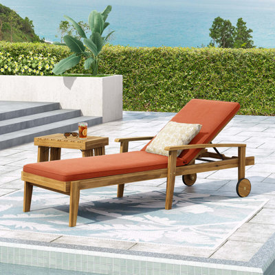 Strausbaugh 78.75" Long Reclining Acacia Single Chaise with Cushions