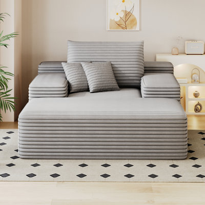 Grey 67.25 In Wide Indoor Chaise Lounge Chair, Bed, Corduroy Fabric, Comfy Ergonomic Pillow, 68"*51" Fluffy Faux Fur Sleeper Couch, Upholstery, High -