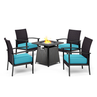 Alyah Patio Furniture,outdoor Furniture,4-piece Wicker Rattan Outdoor Conversation Set With Outdoor Fire Table