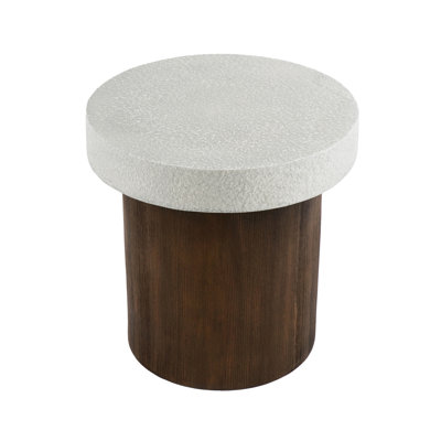 Magnesium Oxide Square Side Table, Antique White Top And Natural Frame, No Assembly, Shape, Natural, Strong Weather- For Indoor & Outdoor