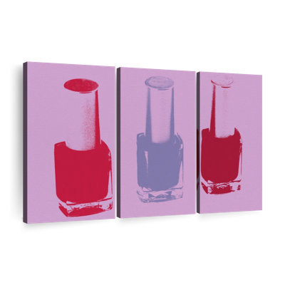 Nail Nail Polish Bottles Trio On Canvas 3 Pieces Set