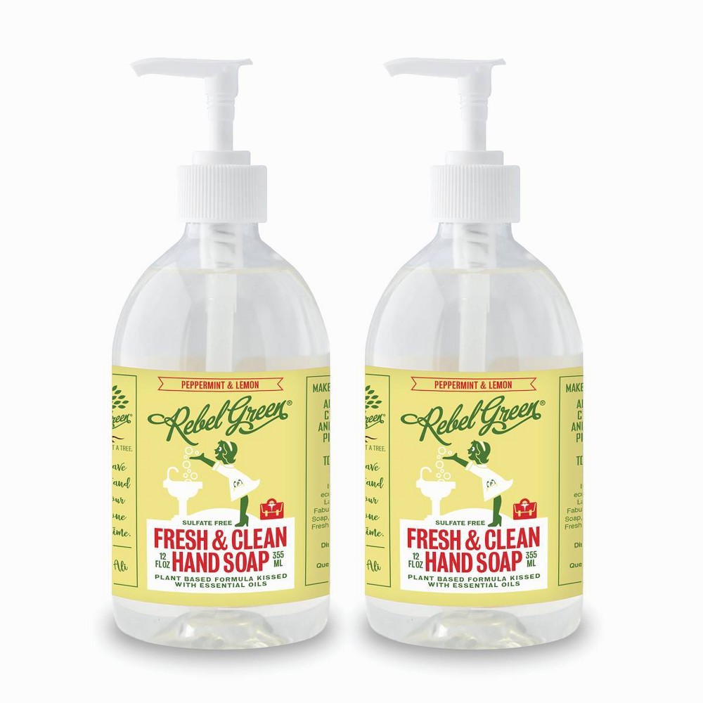Rebel Green Peppermint Lemon Hand Soap - 24 fl oz//2ct: Liquid, Sulfate-Free, Contains Aloe, Vitamin E