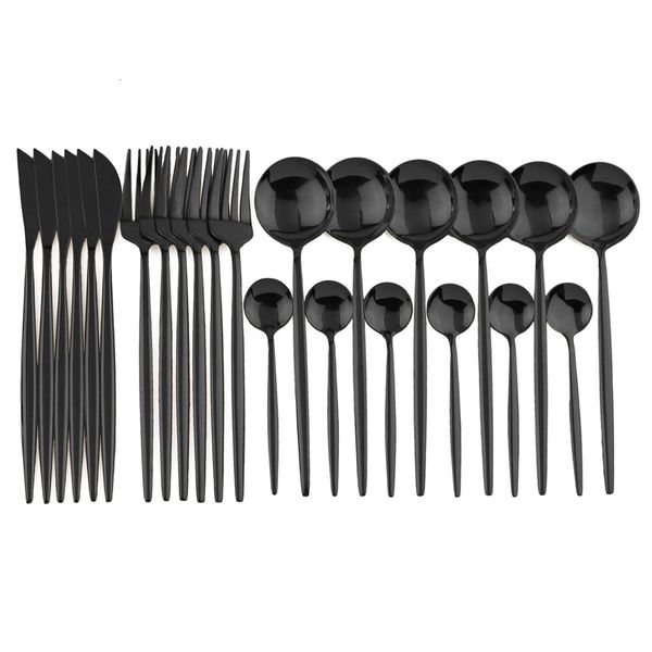 Dinnerware Sets Dinnerware Set Dinner Knife Fork Spoon Tableware Set Stainless Steel Flatware Silverware Wedding el Glossy Black Cutlery Set 230518