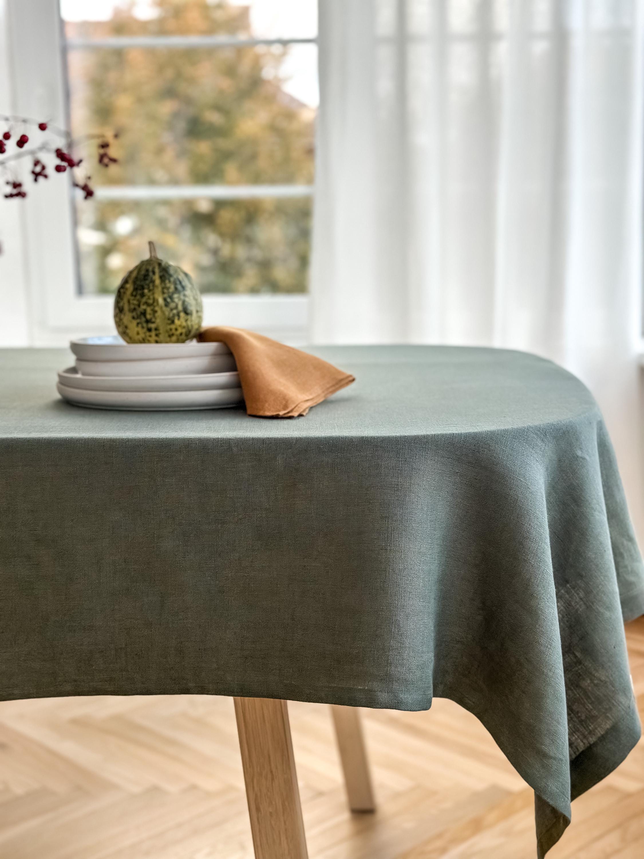 stonewashed Linen Tablecloth in Forest Green/Dark Green Softened Tablecloth/Express Shipping