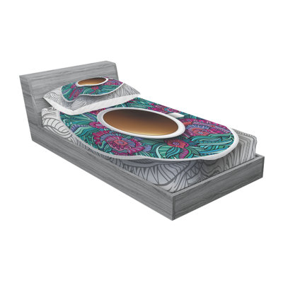 Coffee Drink Herbal Tea Service Chat Happy Calming Time Floral Sheet Set