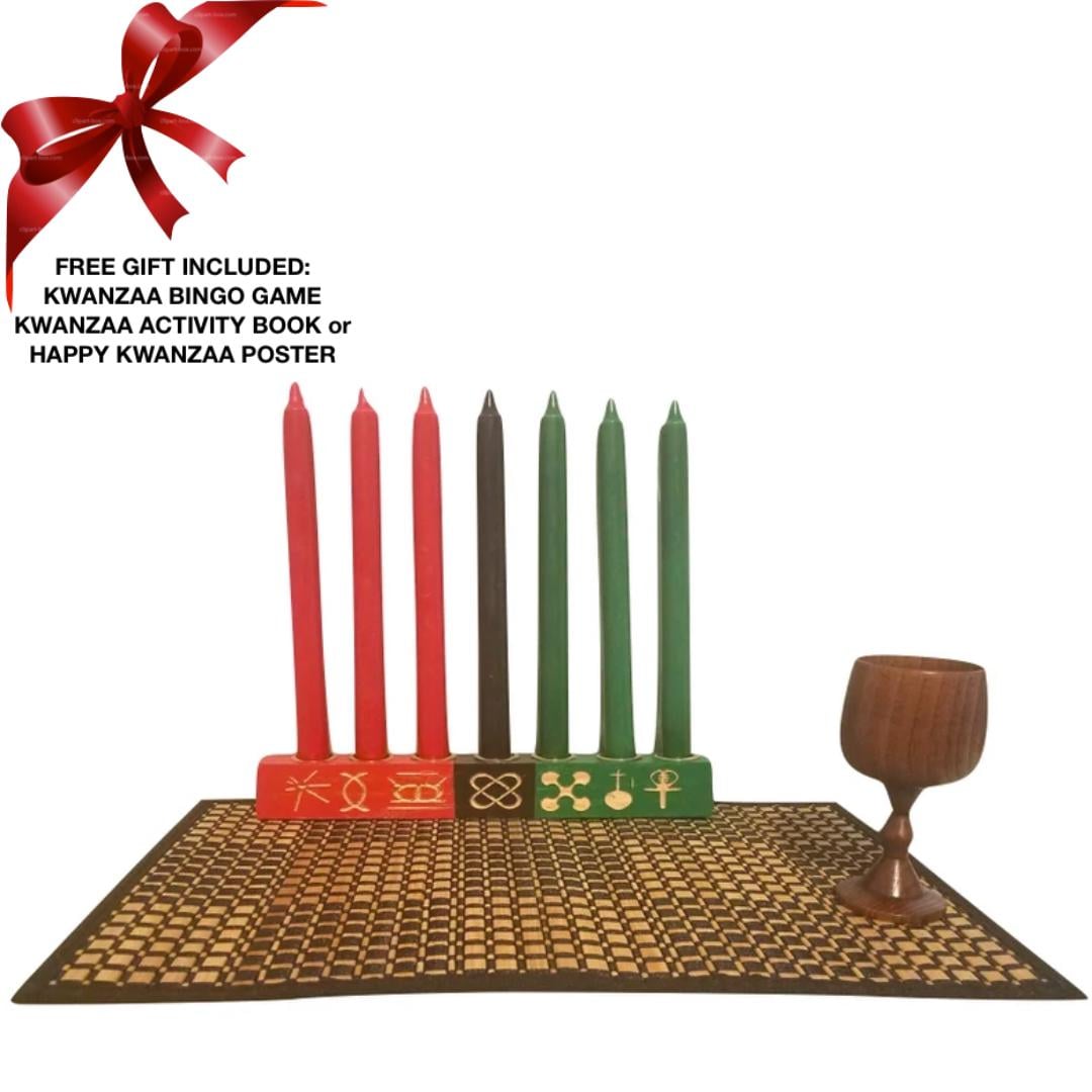 Kwanzaa Kinara - Engraved "Seven Principles" Of Celebration Set