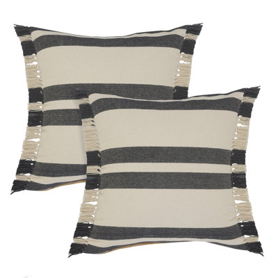 Coastal Striped Fringed Cotton Throw Pillow Set