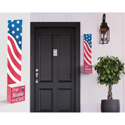 36in 4th of July Address Sign with Holder & Succulent Planter | Outdoor Decor and Celebration Address Plaque Planter