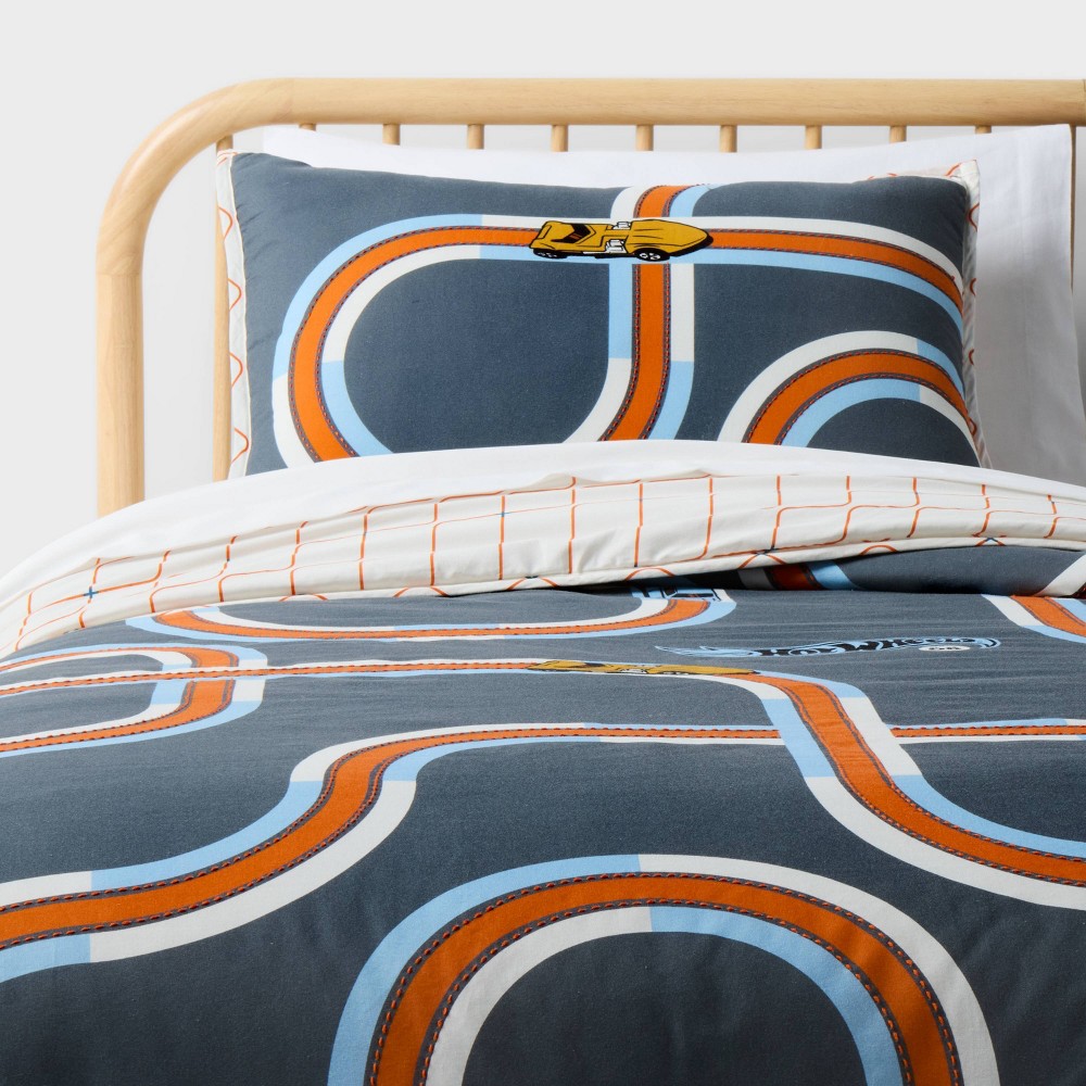 Twin Hot Wheels Retro Track Kids' Quilt Set Gray - Hot Wheels by Pillowfort™