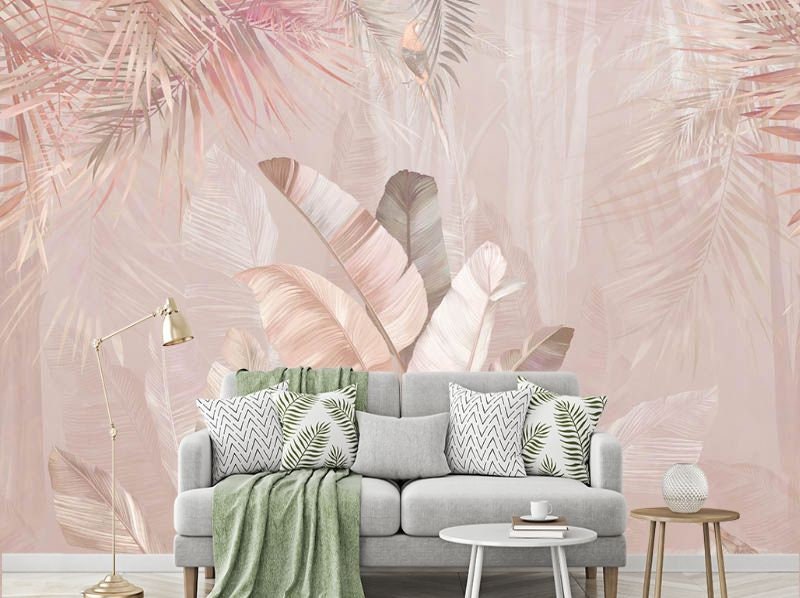 Tropical Leaves Wallpaper Pastel Exotic Vinyl Wall Decor
