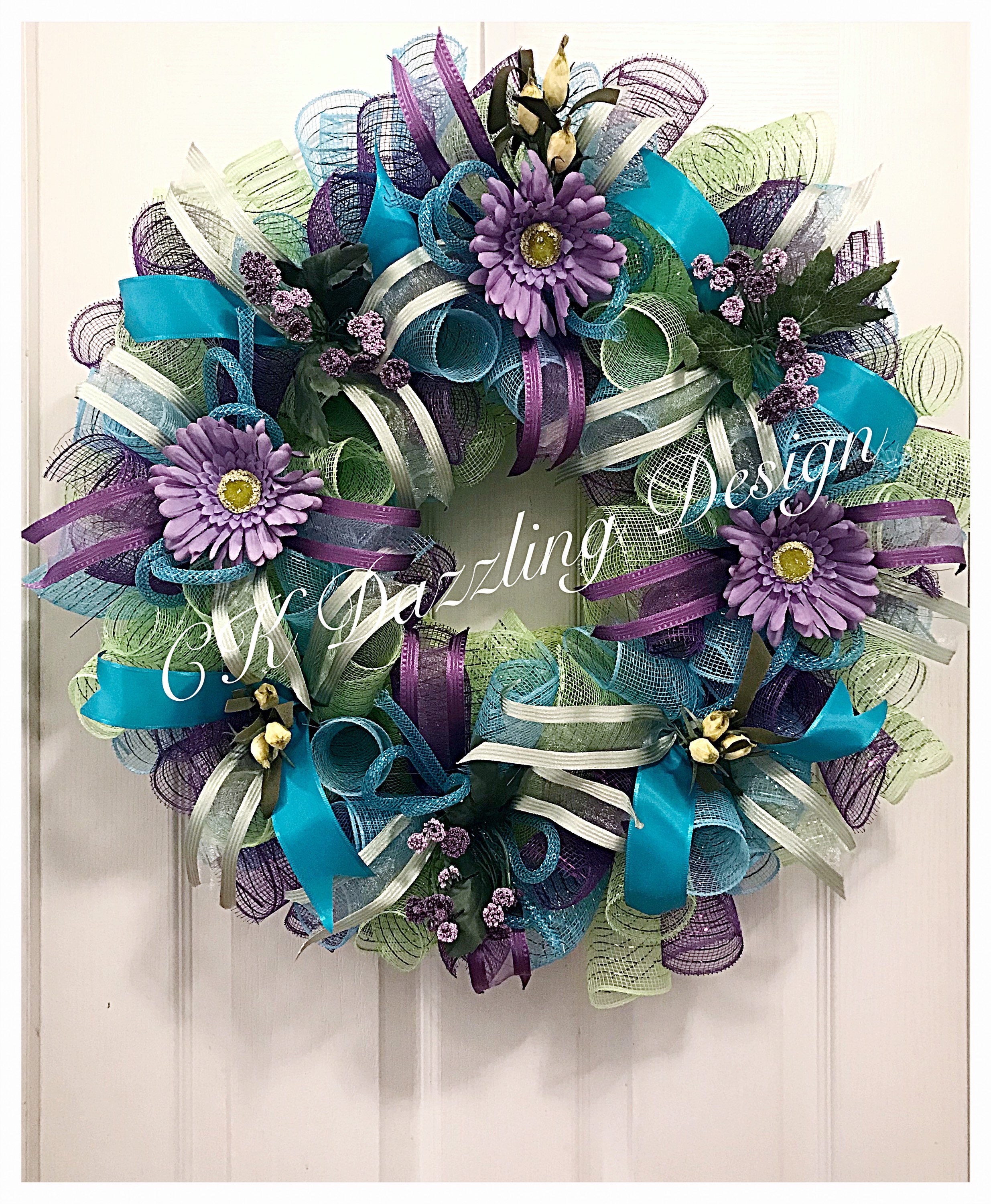 Lavender Gerber Daisy Spring Deco Mesh Wreath/Gerber Wreath/Lavender Daisy Wreath/Spring Wreath