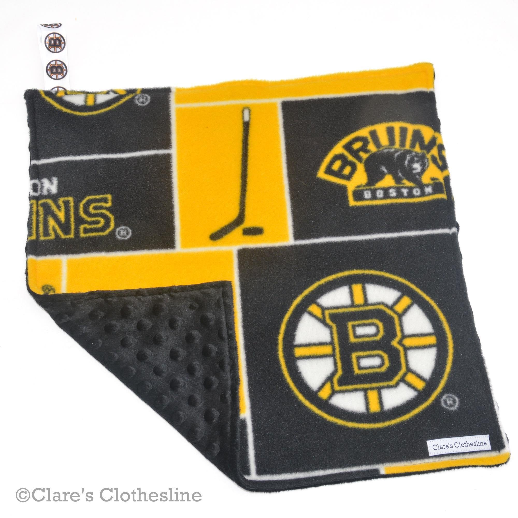 Boston Bruins Lovey Black & Gold Hockey Baby Gift, Fleece & Minky Snuggle Blanket | 15"x15"