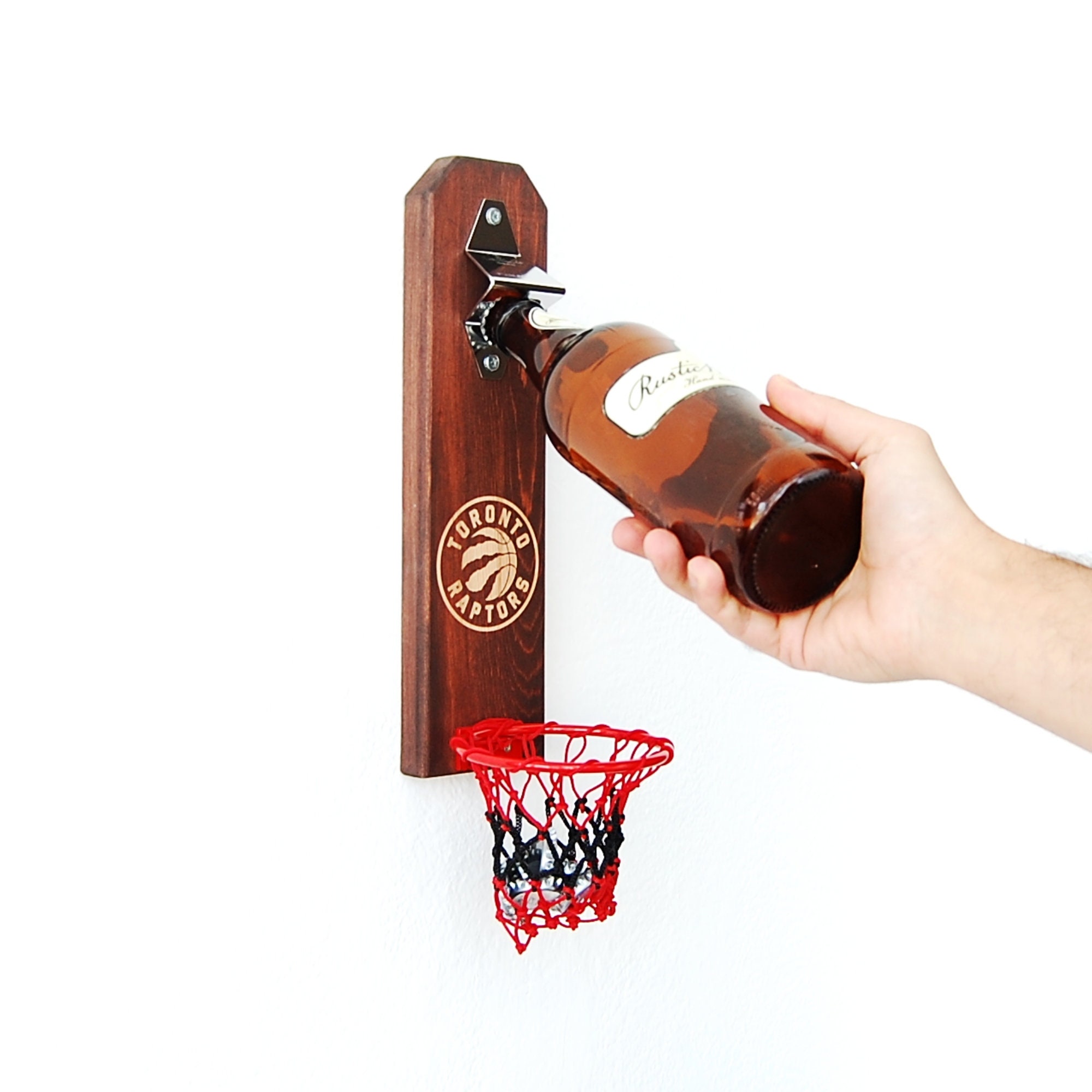Toronto Raptors Bottle Opener Handmade Pine Wood Basketball Gift