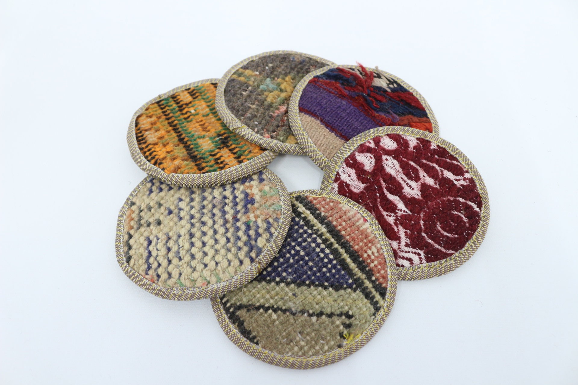 Kilim Coaster Set, Turkish Woven Rug Coasters, Set Of 6