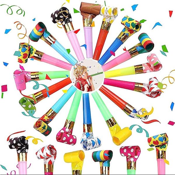 20Pcs/bag Party Horns Blower Whistles Noisemakers, Party Favors Colorful Birthday Blowout Horns Whistles Multiple Color Goodies