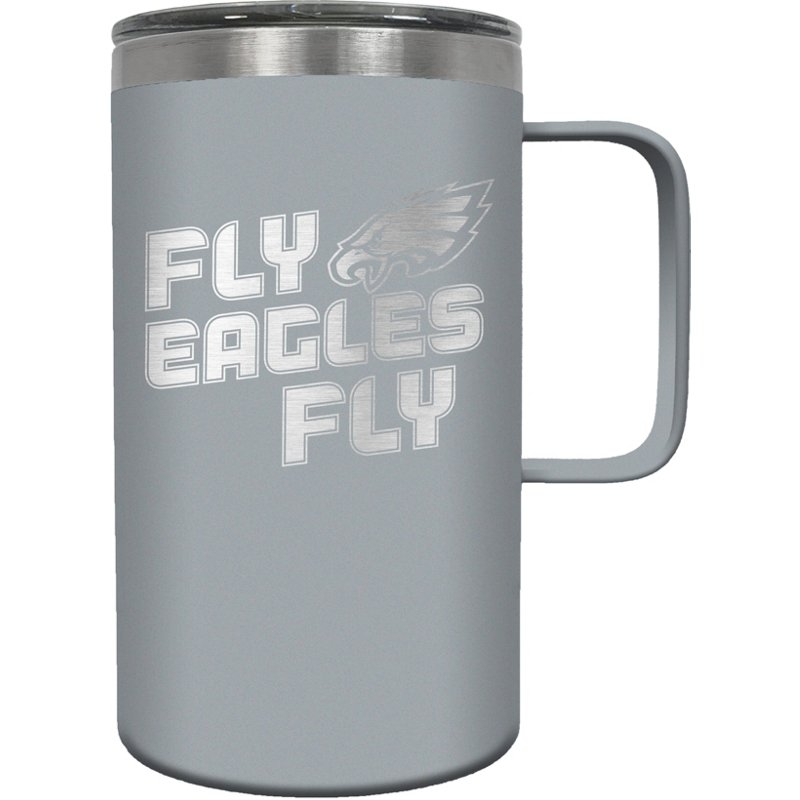 Take your favorite beverage to work, the gym or the stadium with a Great American Products Philadelphia Eagles 18oz Hustle Travel Mug. This handy mug is vacuum insulated so beverages stay hot or cold for optimum enjoyment. A large handle allows comfortable carrying, a spill-resistant lid prevents messes, and an engraved logo shows your team pride. Great Amer...
