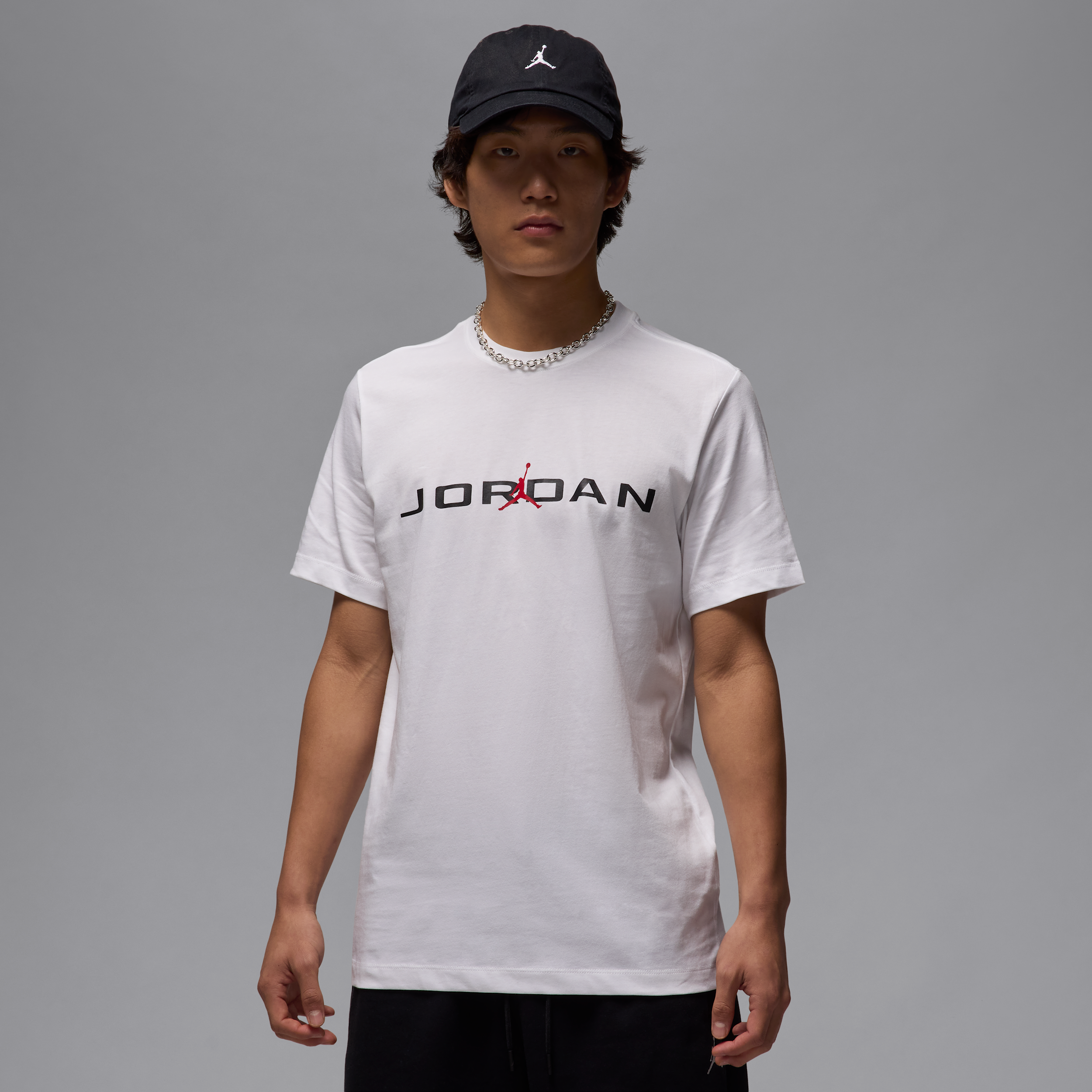 Made from midweight cotton, this classic tee puts heritage Jordan graphics front and center for style that's ready for everyday wear. [] Product Details:100% cotton. Machine wash. Imported. Style: IB7353; Color: White/Black/Gym Red; Size: L; Gender: Male; Age Group: Adult | Jordan Air Men's T-Shirt in White, Size: Large | IB7353-101
